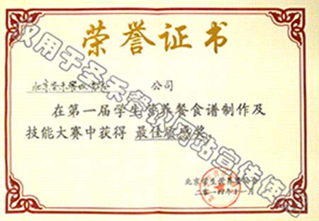 第二届学生营养餐行业营养餐食谱制作及技能大赛最佳香气奖